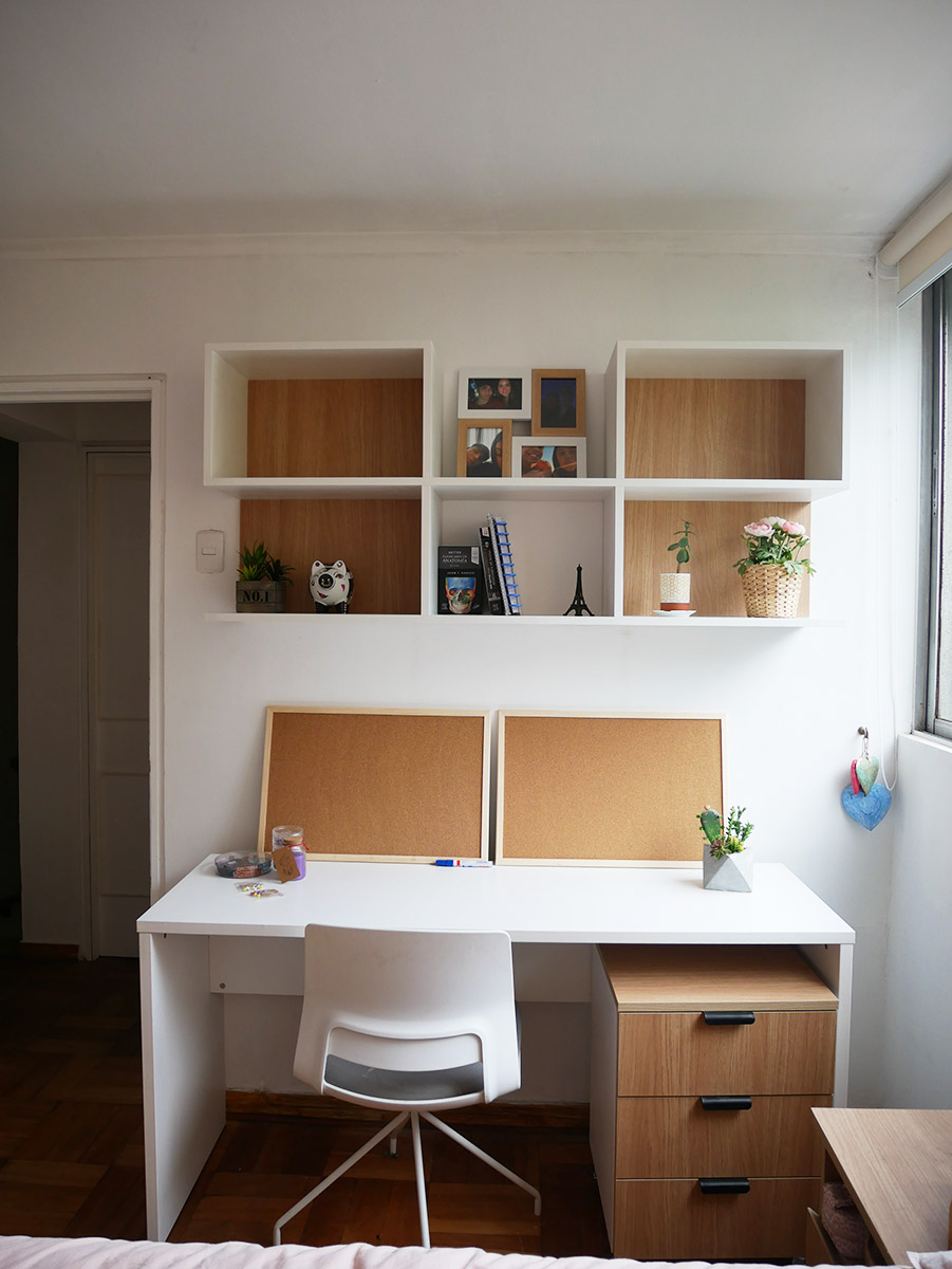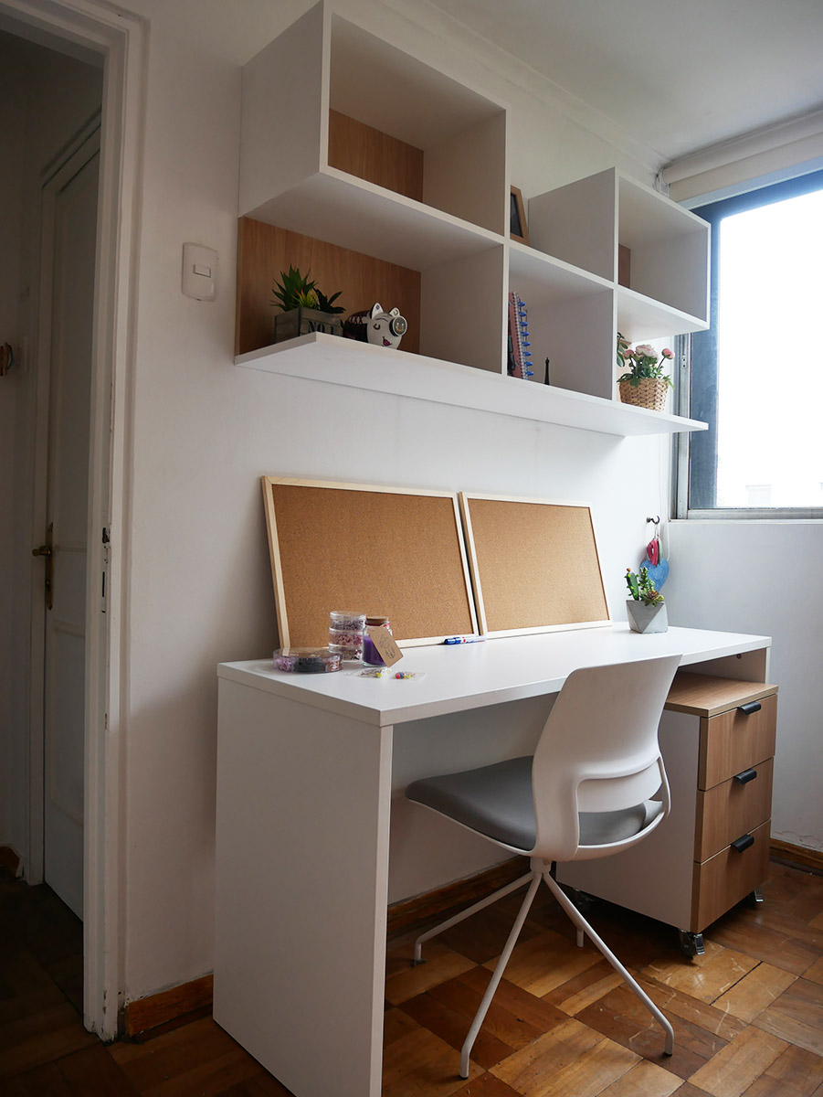 Unido a terminaciones acogedoras y limpias visualmente, conjuga en un hermoso y funcional lugar de estudio.