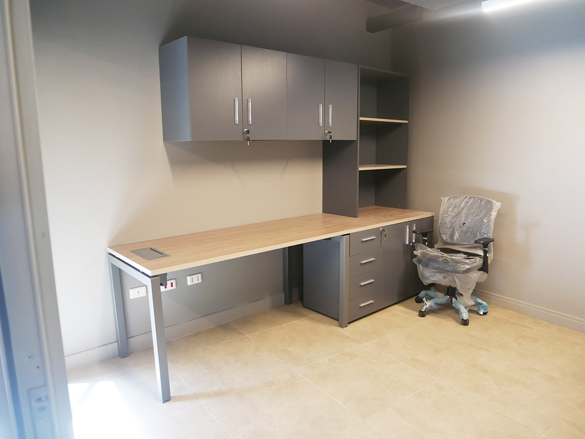 En este proyecto el encargo fue diseñar el lay-out o distribución de espacios; el equipamiento de oficinas y sus muebles especiales; definir sus materialidades y terminaciones, es decir, especificaciones técnicas y licitar.