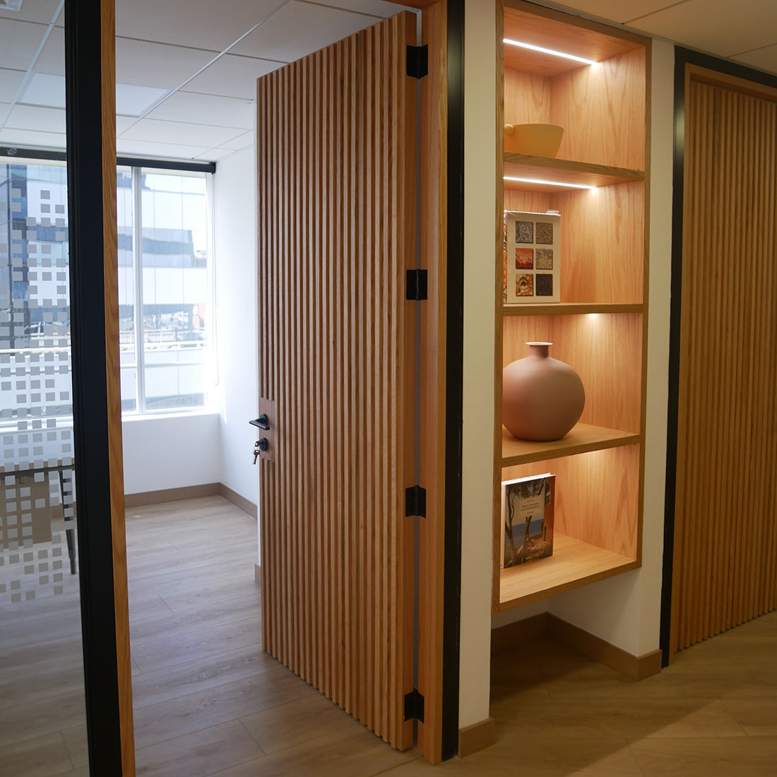 El principal desafío fue trabajar sobre planos desactualizados, lo que exigió proyectar soluciones sobre una estructura poco definida. Mi participación abarcó todas las fases del proyecto, desde el anteproyecto, el desarrollo de especificaciones técnicas de mobiliario estándar y especial, el proceso de licitación, hasta la supervisión y ejecución, asegurando un resultado alineado con los objetivos del cliente.
